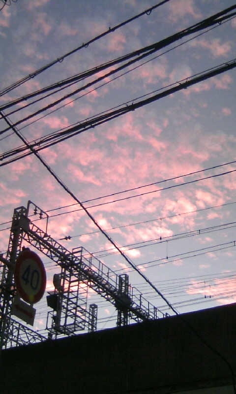 先日仕事でぶらぶら外を歩いている途中、あまりにも夕焼けが綺麗なので思わず携帯でパチリ。